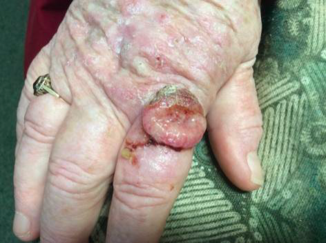 - Most commonly affected areas are back of hands, forearms, scalp, lower lip, pinna