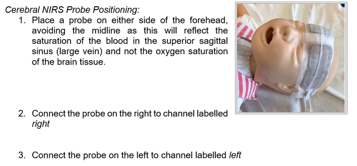 3. Hypafix Strips - NIRS probes should be attached using a piece of wide hypafix. The adhesive backing should not be removed, to facilitate easy skin inspection every 6 hours.