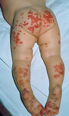 • Classical symmetrical distribution of palpable purpura - predominantly over the child’s buttocks, lower limbs and ankles