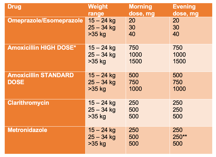 Table 2: Recommended medication doses based on the ESPGHAN H.pylori guidelines1