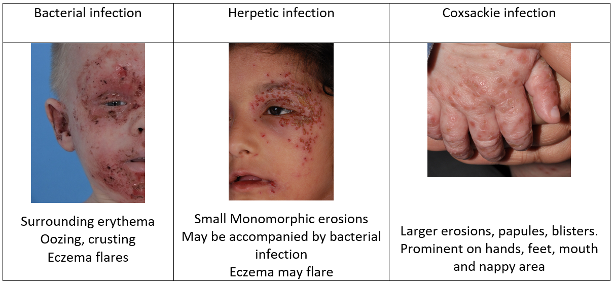 If accompanied by secondary bacterial infection, it is important that the viral and bacterial infection and the eczema flare are managed in tandem.
