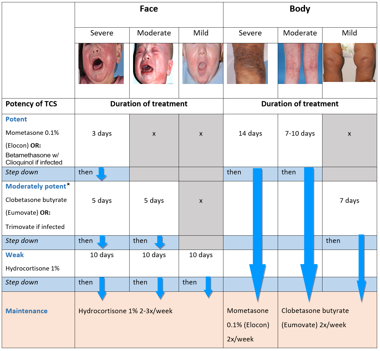 - Topical corticosteroids – see Table 2 for TCS choice & duration