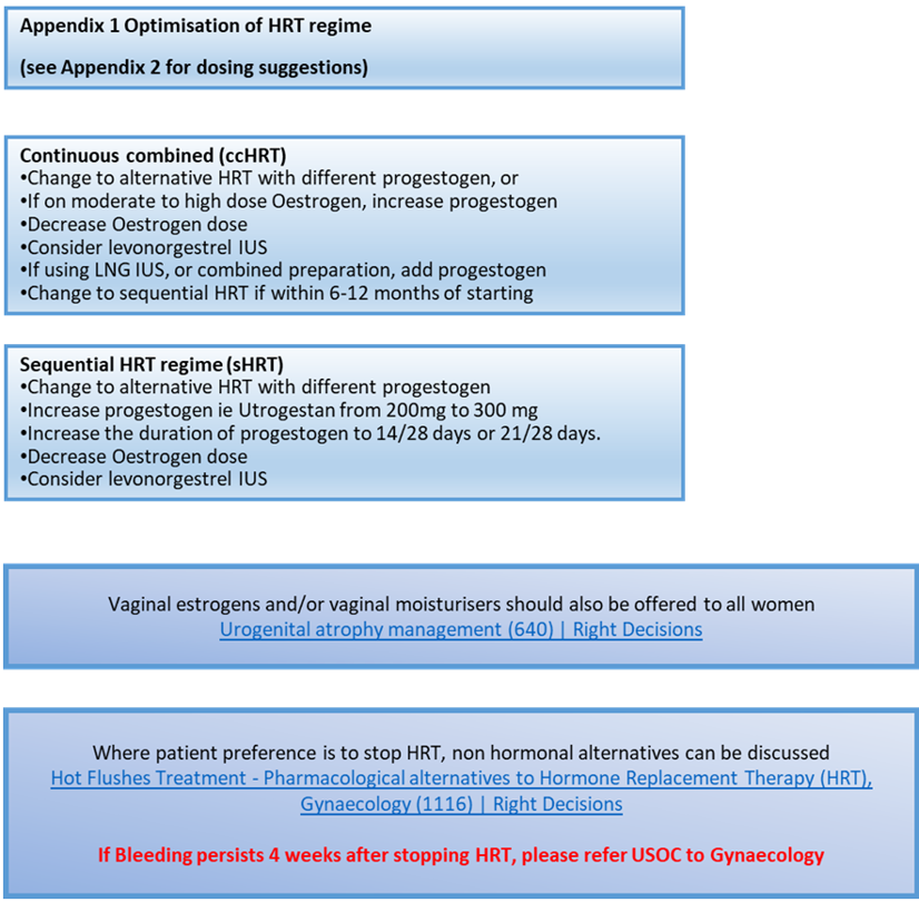 Optimisation of modifiable factors can, in themselves, reduce episodes of unscheduled bleeding on HRT and endometrial cancer risk.