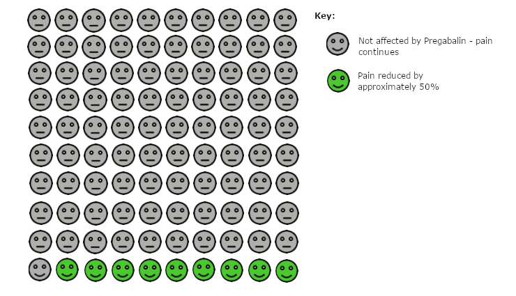 Research studies show that 600 mg of pregabalin daily reduced pain by at least 50%  in: