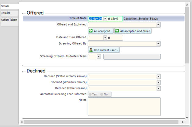 - To review the outstanding investigation results, ensure the relevant date range is selected and a list of women should appear.