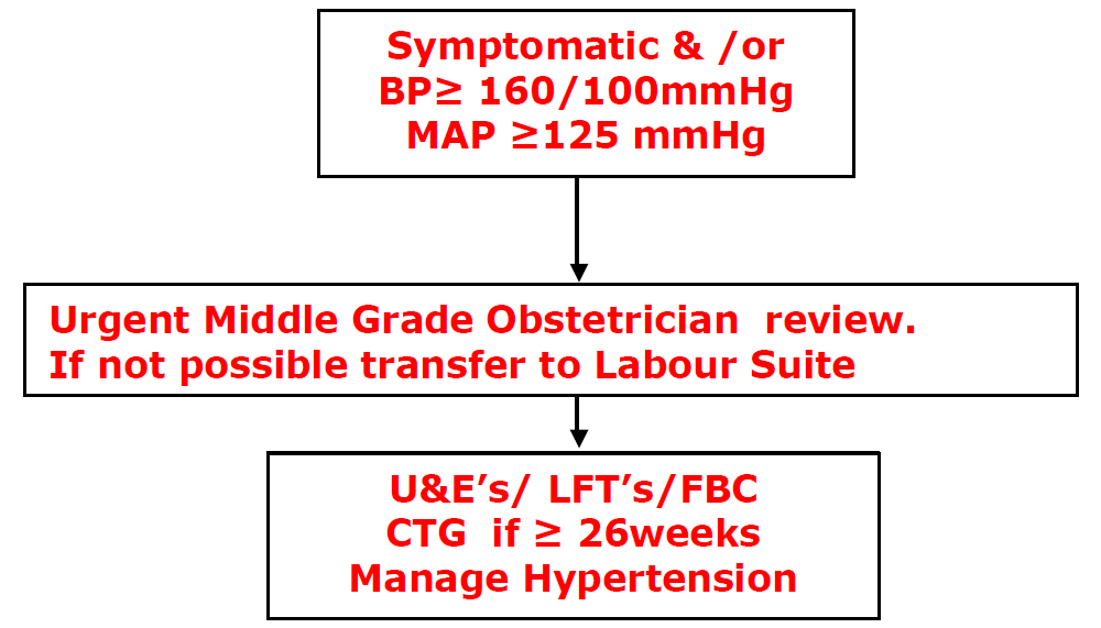 Chart C: Symptomatic woman & / or BP ≥160/100mmHg MAP ≥ 125mmHg