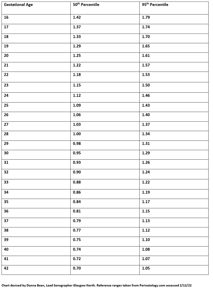 Refer for medical scan if LV DVP>8 cm or <2cm before 20 weeks or LV DVP >10cm or <2cm after 20 weeks. If abnormality confirmed discussion with fetal medicine at QEUH is indicated.