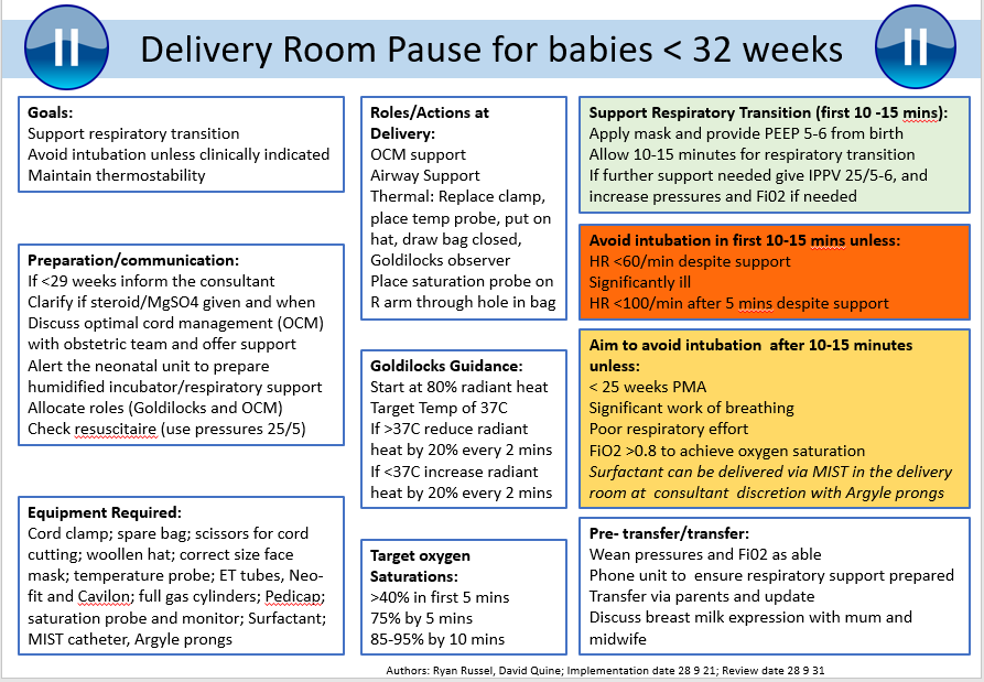 Delivery room pause <32weeks
