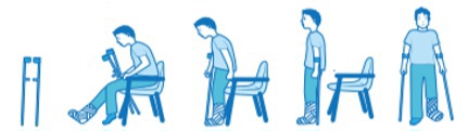 Always keep your hands out of your crutches when trying to stand and sit so you don’t hurt your elbows or shoulders