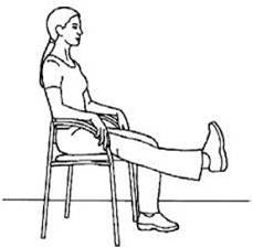 - Sitting in a chair with support at your lower back. Straighten your affected leg out in front, straightening the knee and toes pointing up towards the ceiling. Hold for 5s.