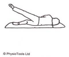 - Lie on your unaffected side. Make sure your top leg is in line with your body. Lift the leg up towards the ceiling and slowly lower back to the starting position.
