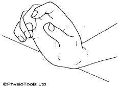 Clasp your hands together and support your forearms on a table. Put the back of one hand on the table and then turn your hands and put the back of the other hand on the table.