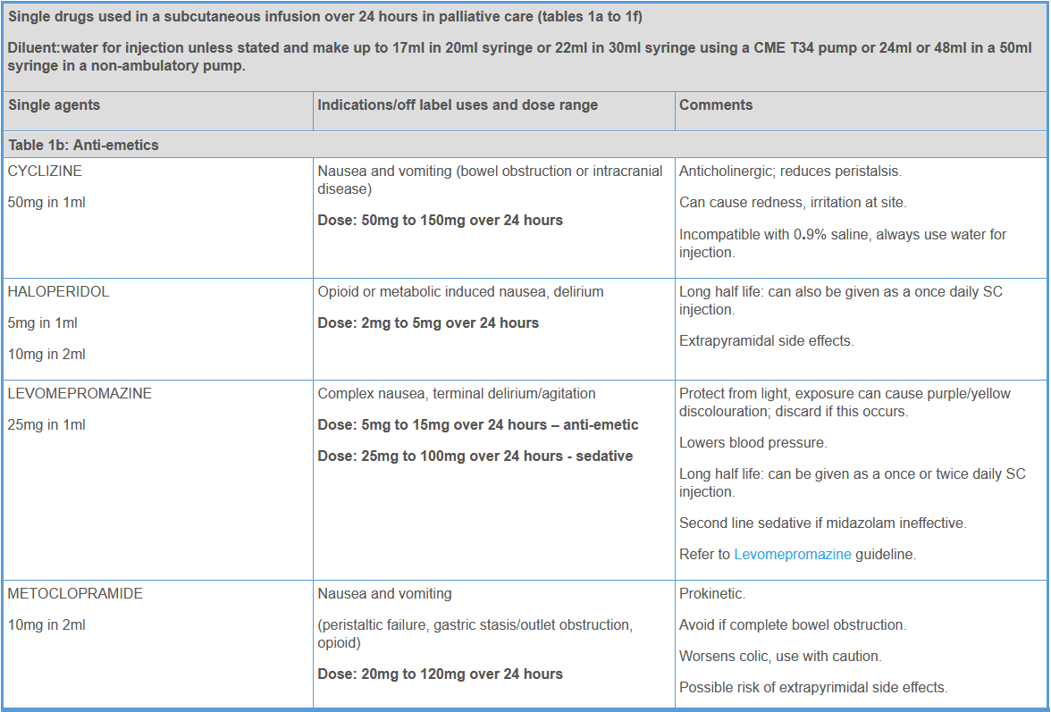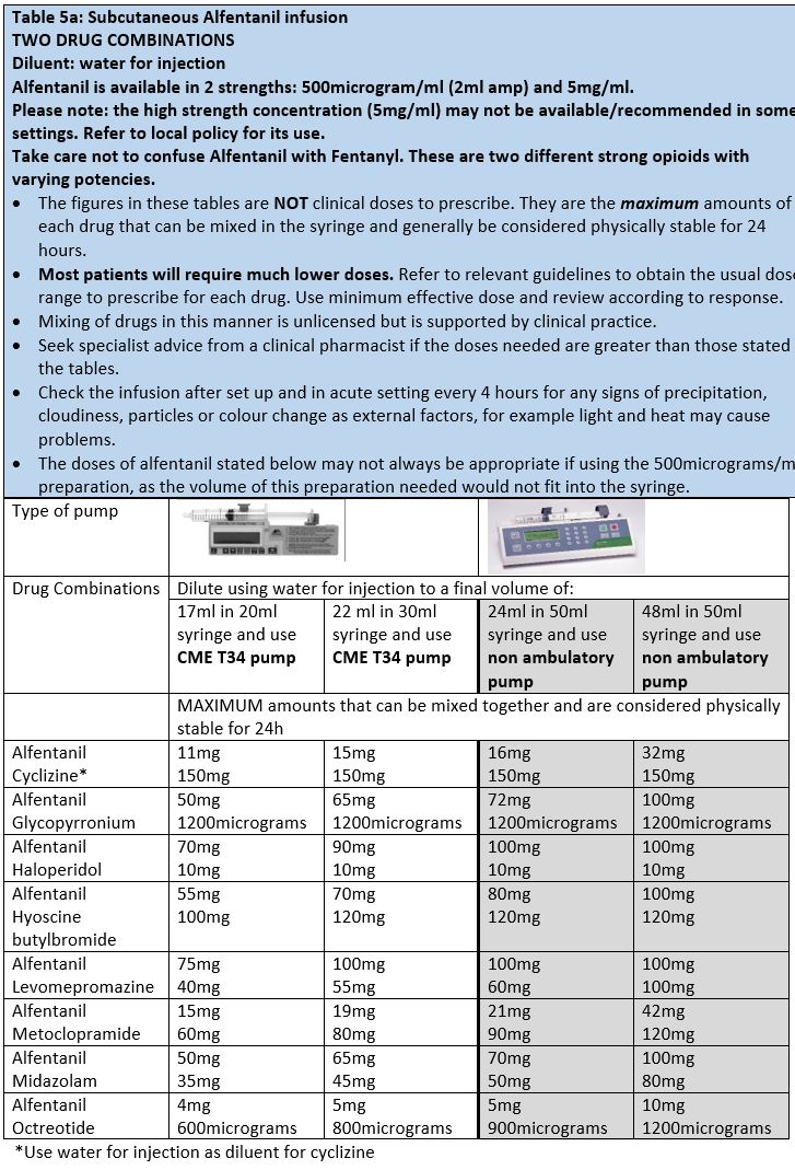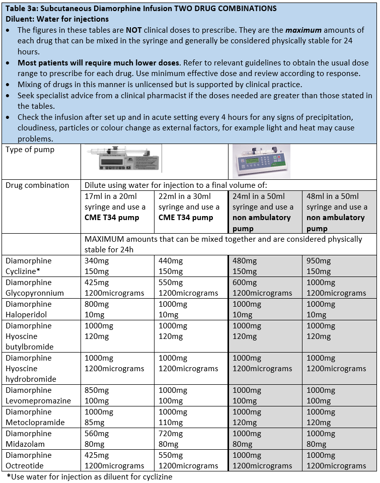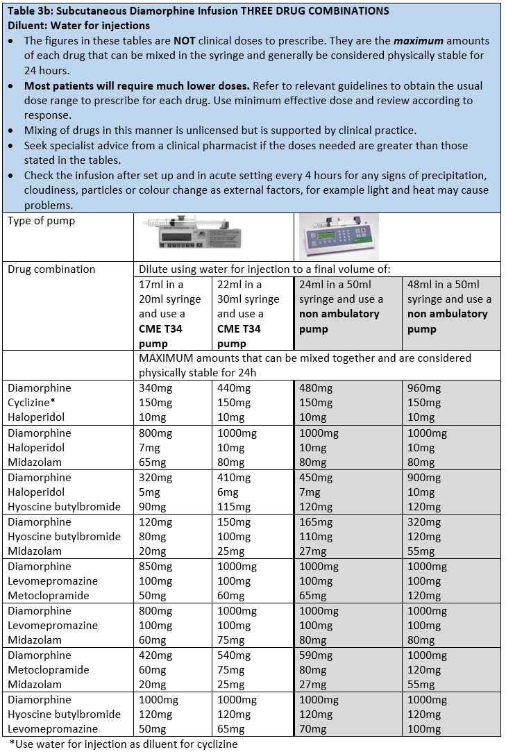 Subcutaneous Diamorphine Infusion (3 Drug Combinations)