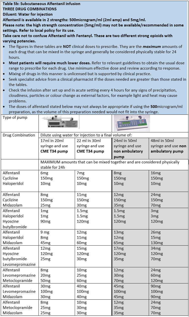 Subcutaneous Alfentanil Infusion (3 Drug Combinations)
