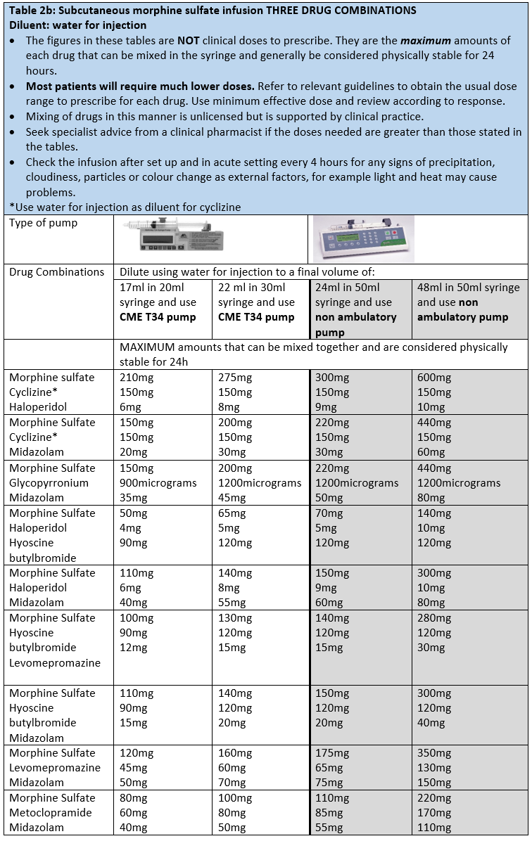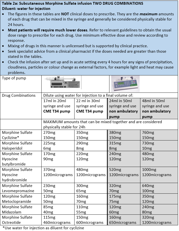 Subcutaneous Morphine Infusion (2 Drug Combinations)
