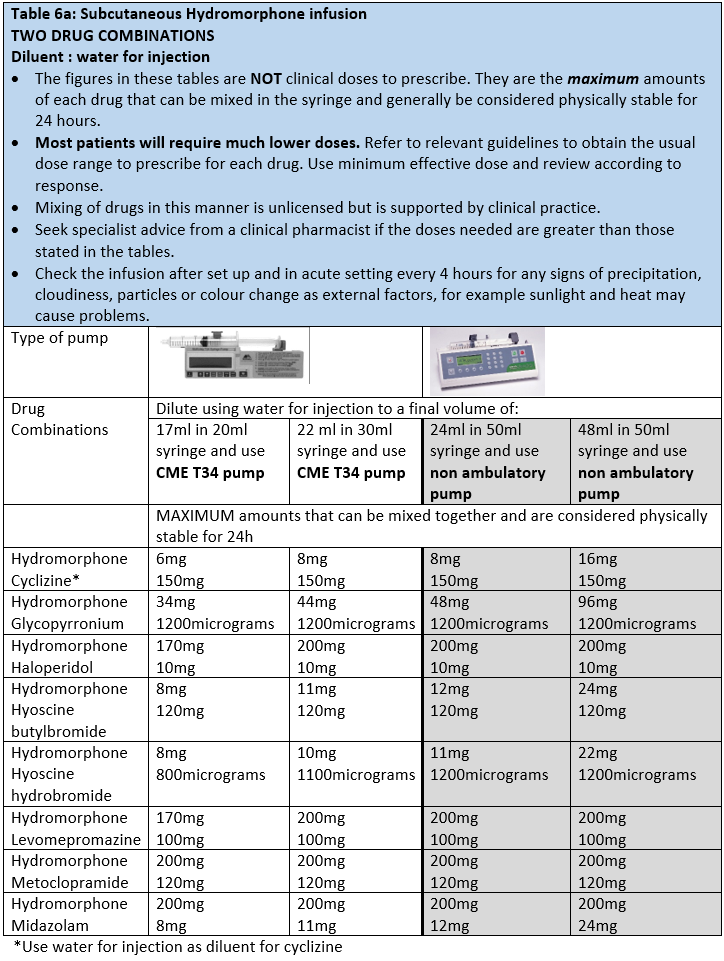 Subcutaneous Hydromorphone Infusion (3 Drug Combinations)