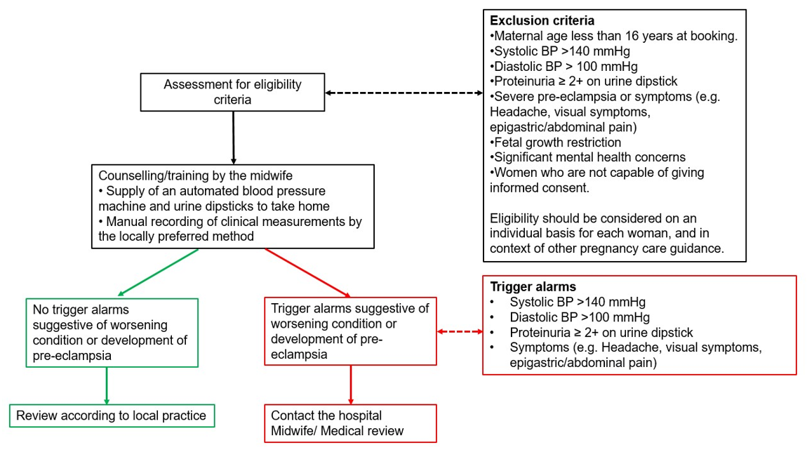 All women being considered for home blood pressure monitoring must fulfil the following clinical inclusion and exclusion criteria: