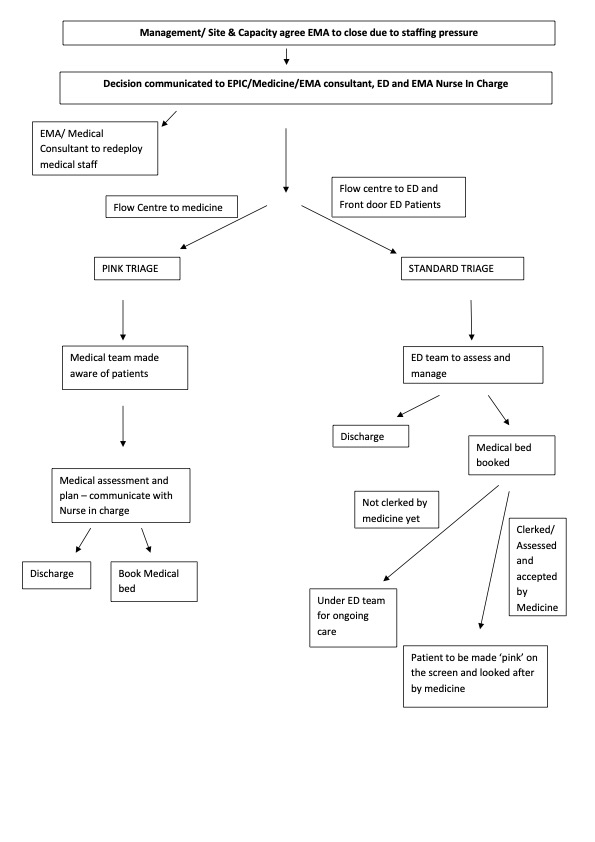 Protocols to follow for EMA closure, and consequences to SJH ED, due to staffing pressures. In summary: