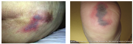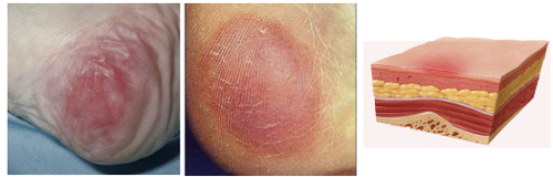 Intact skin with non-blanchable redness, usually over a bony prominence. Darker skin tones may not have visible blanching but the colour may differ from the surrounding area. The affected area may be painful, firmer, softer, warmer or cooler than the surrounding tissue.