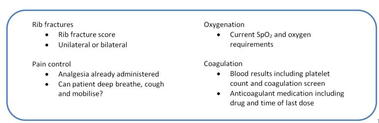 These guidelines are for all staff involved in the care of adult trauma patients with rib fractures but are of particular relevance to those working in the Emergency Department, Theatres, Anaesthesia, Intensive Care, Surgical High Dependancy, Trauma Ward and other wards receiving trauma patients.