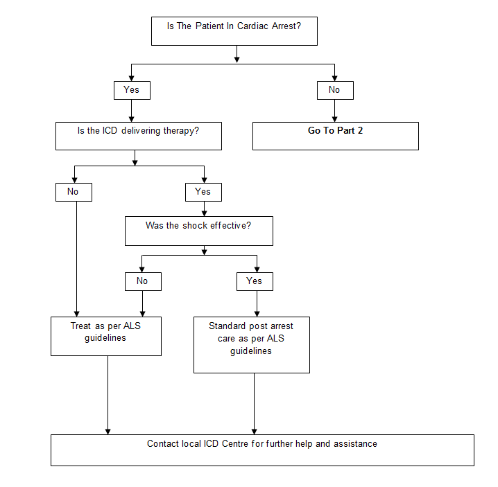 The algorithm below is to provide guidance to community teams in the acute management of patients who are presenting acutely unwell with an arrhythmia and have an ICD in situ.