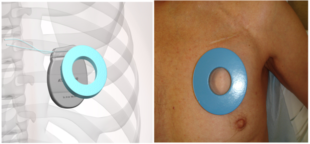 The diagram below demonstrates the placement of the ring magnet on the patient’s chest to enable emergency deactivation of the defibrillator, if required.
