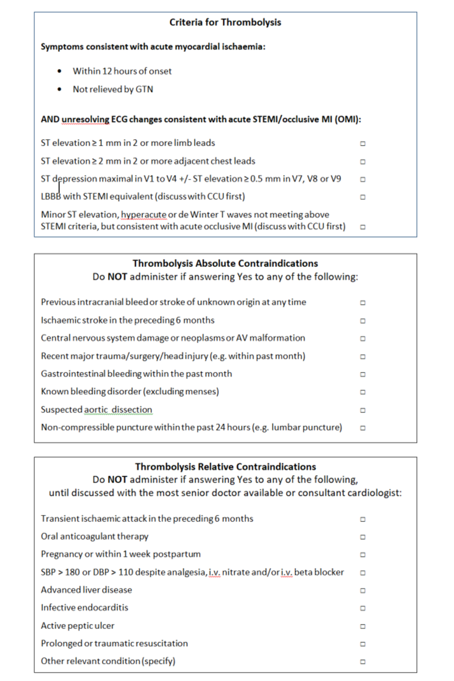 - If tenecteplase is unavailable, it can be substituted by alteplase (requires infusion pump, no half-dosing)