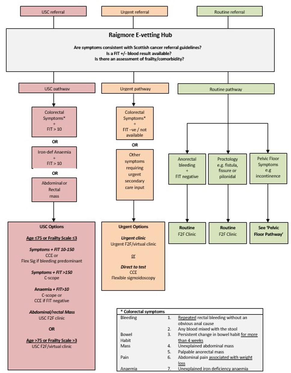 The colorectal multidisciplinary team meeting (MDT) takes place every Friday at 2pm via MS Teams. The meeting makes recommendations regarding the management of patients with lower GI malignant disease. This is predominantly patients with colon or rectal adenocarcinoma but patients with anal squamous cell cancer, small bowel malignancy or appendiceal tumours may also be discussed. The meeting provides sub-specialty support and advice to patients from across NHS Highland (Raigmore, Belford and Caithness) and NHS Western Isles. The meeting includes representation from the following services: