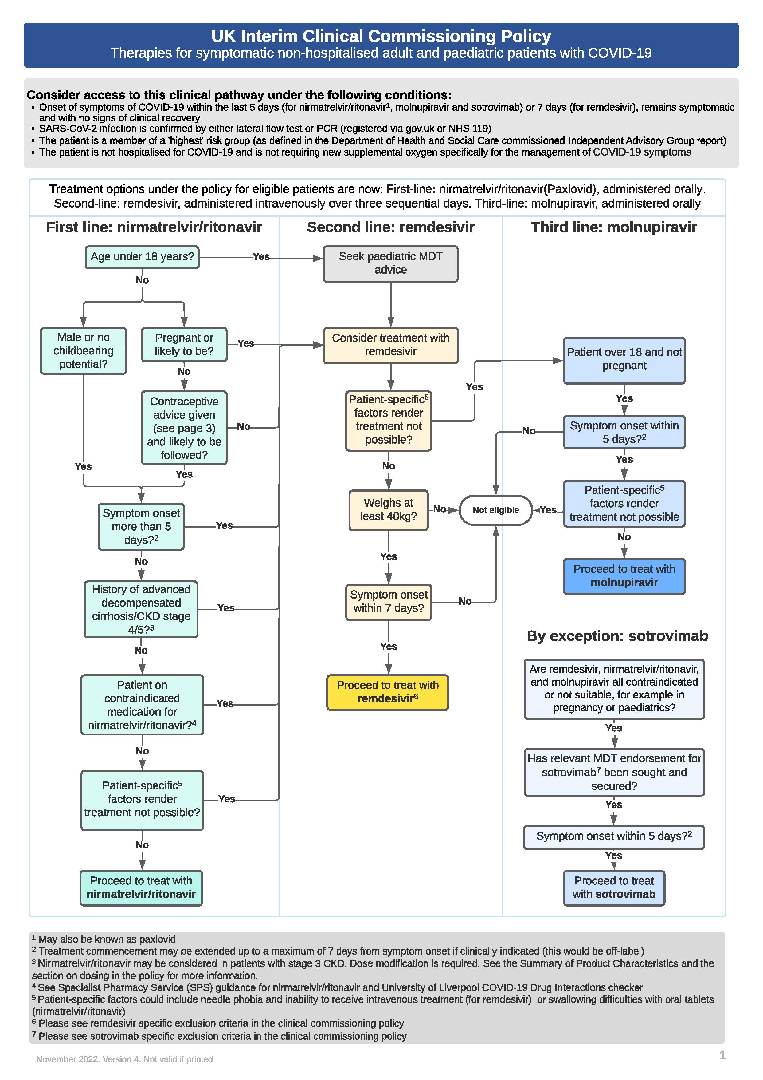 Please refer to the summary of product characteristics for nirmatrelvir plus ritonavir, Paxlovid®), remdesivir, molnupiravir and sotrovimab as published on www.medicines.org.uk/emc website.