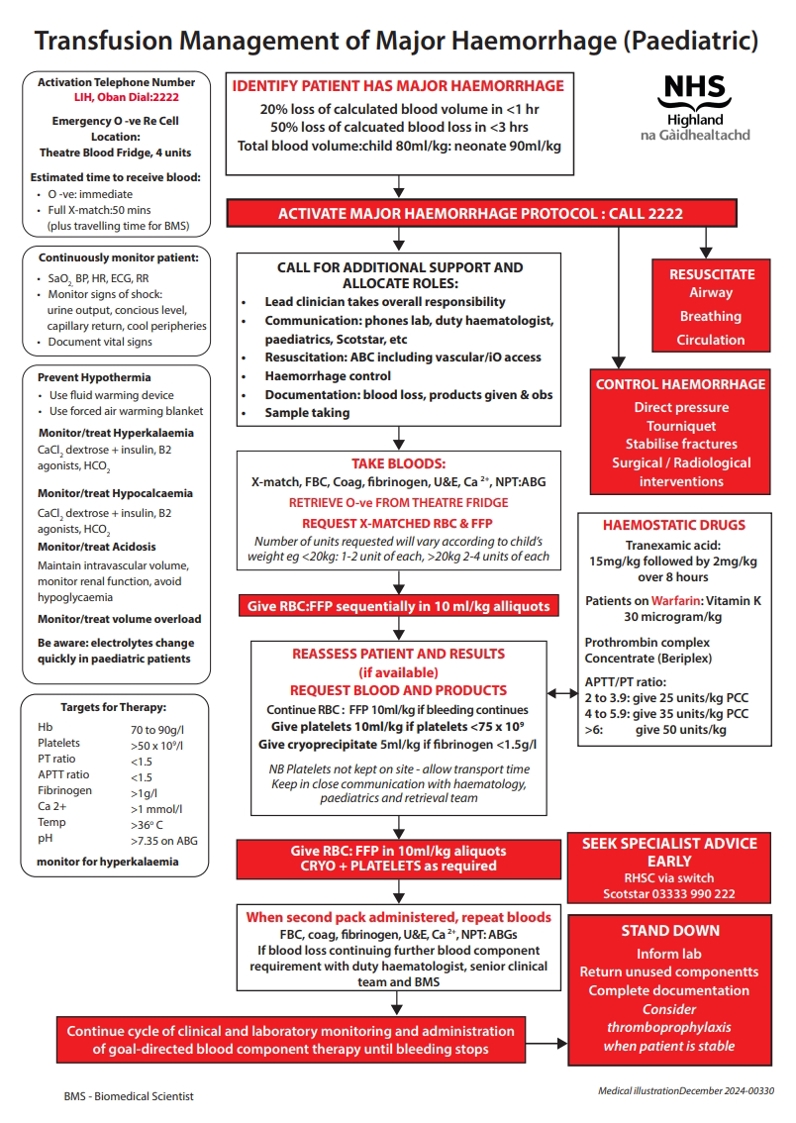 - Cause of haemorrhage, eg, trauma, GI bleed, relevant background clinical details such as known coagulopathy or liver disease, anticoagulant use.
