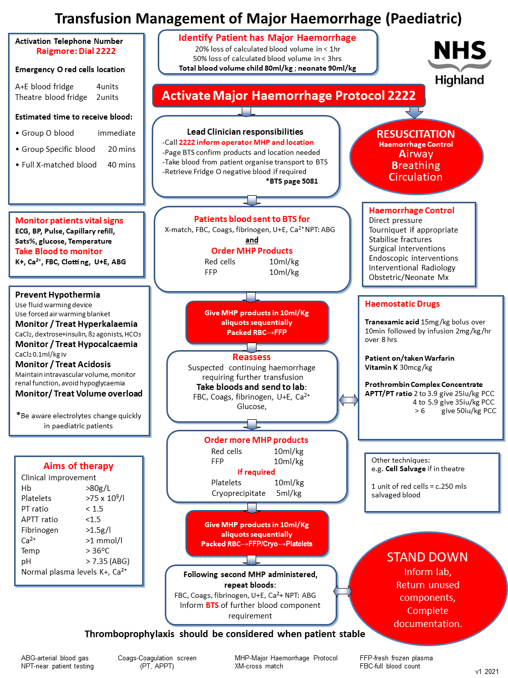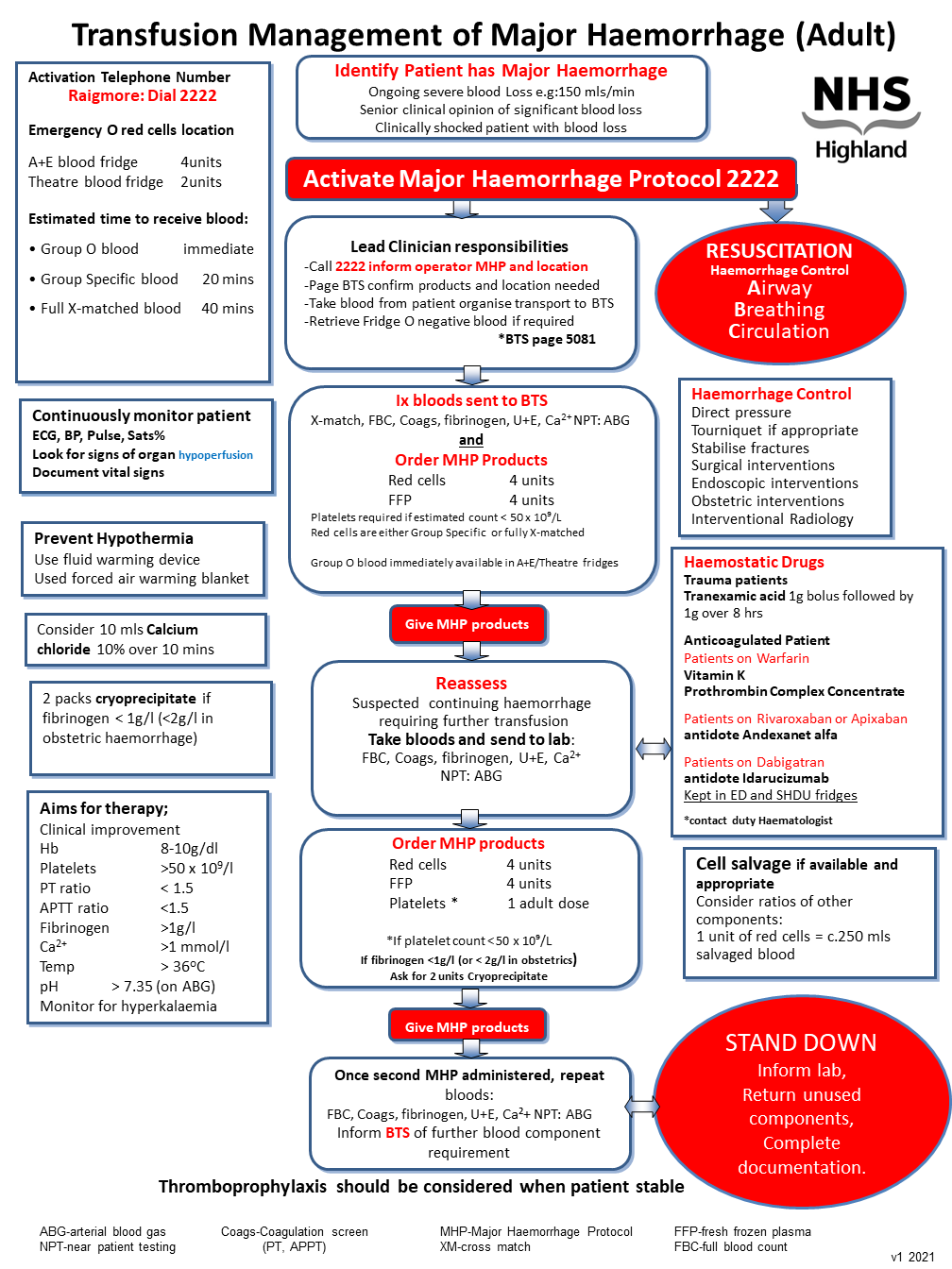 Major haemorrhage protocol: Highland HSCP (Guidelines)