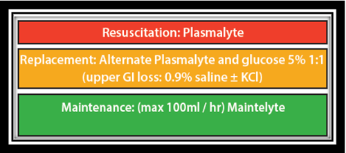 Fluids designed for resuscitation and replacement (such as Hartmann’s or Plasmalyte)