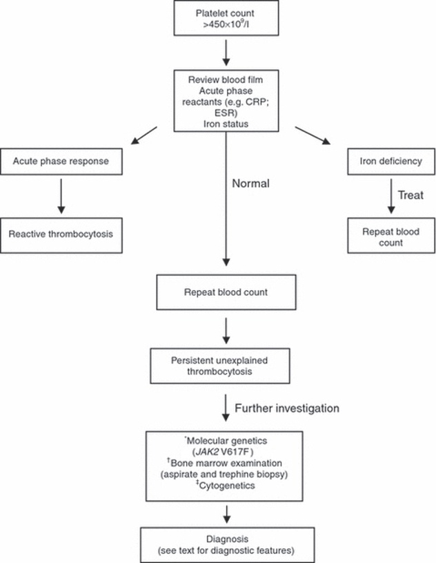 Thrombocytosis is a common finding and is a frequent cause of referral for further investigation. There is a wide range of primary (eg, essential thrombocythaemia (ET), other myeloproliferative neoplasm MPN) and secondary causes as well as false or ‘spurious’ conditions mimicking thrombocytosis. Much less commonly there is a primary cause (eg, ET, other MPN). Establishing the cause therefore requires consideration of clinical features, haematological parameters and other test results.