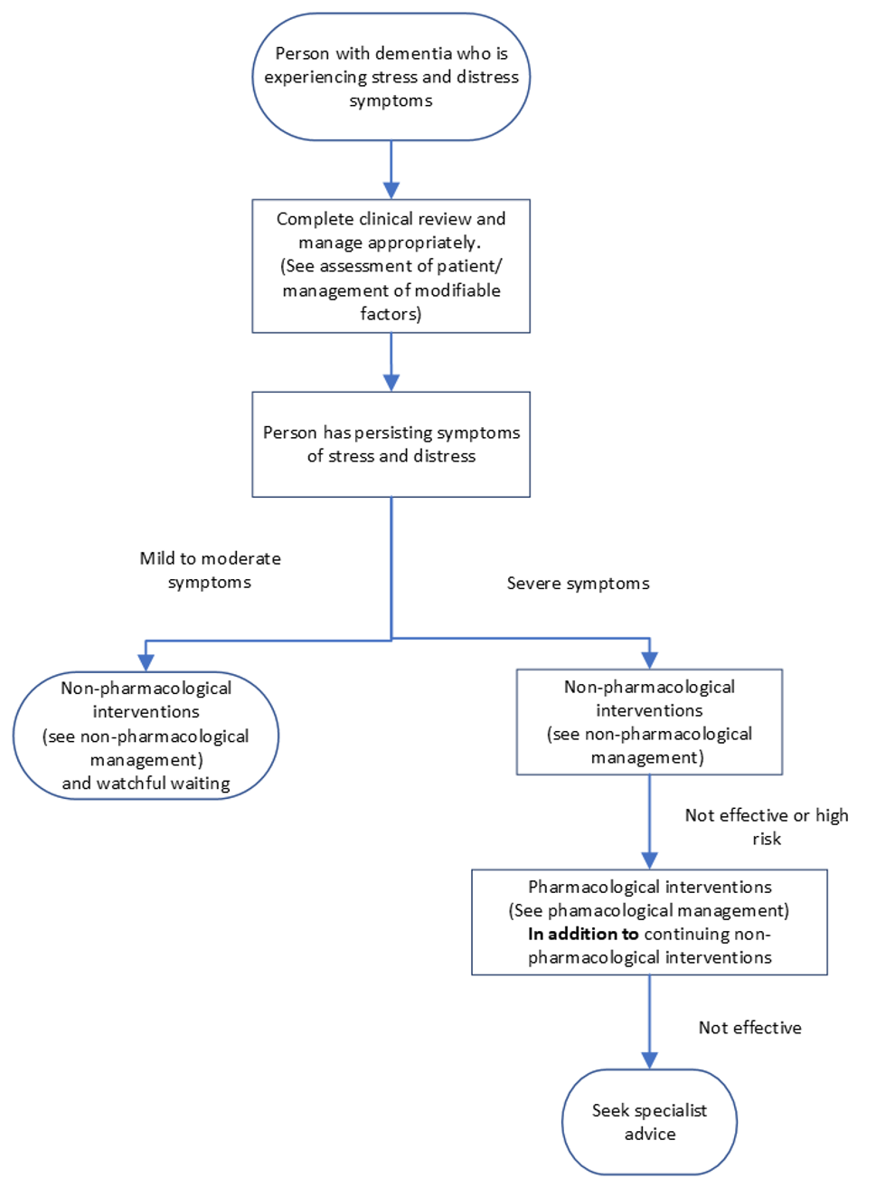 This guideline provides advice on the management of stress and distress symptoms in dementia for in NHS Highland (excluding Argyll and Bute).