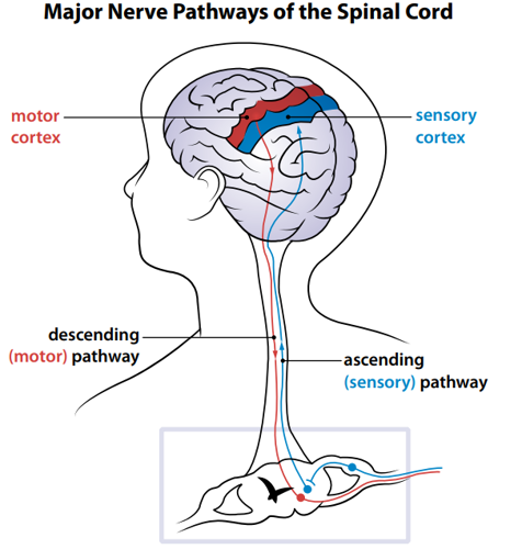 The spinal cord has two major nerve pathways that help your brain control your body: